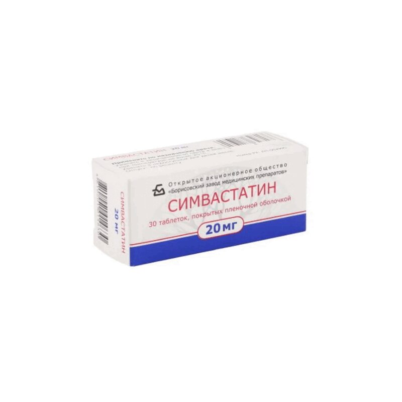 Симвастатин 20 мг таблетки покрытые пленочной оболочкой 30 шт БЗМП