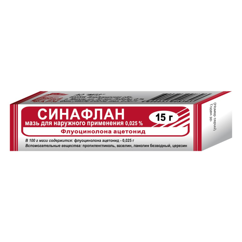 Инструкция по применению Синафлан 0.025% мазь для наружного применения 15 г