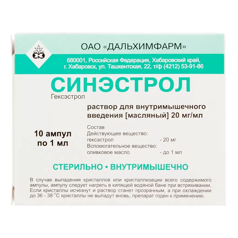 Инструкция по применению Синэстрол 20 мг/мл раствор маслянный для инъекций 1 мл 10 шт