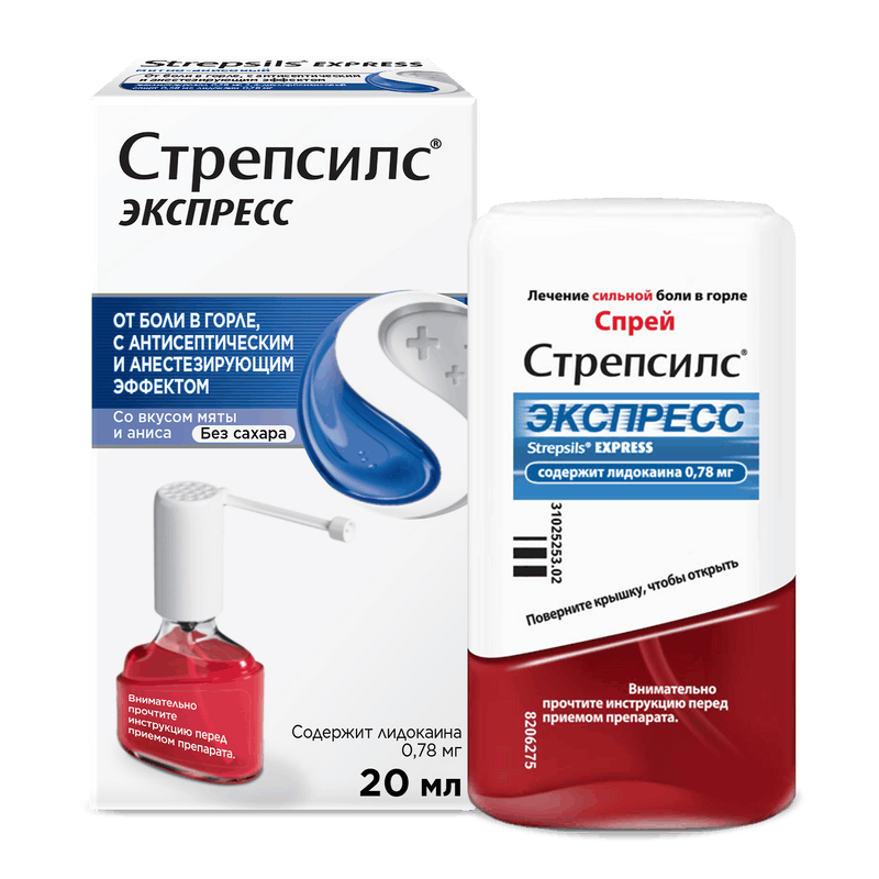 Инструкция по применению Стрепсилс Экспресс спрей для местного применения 20 мл