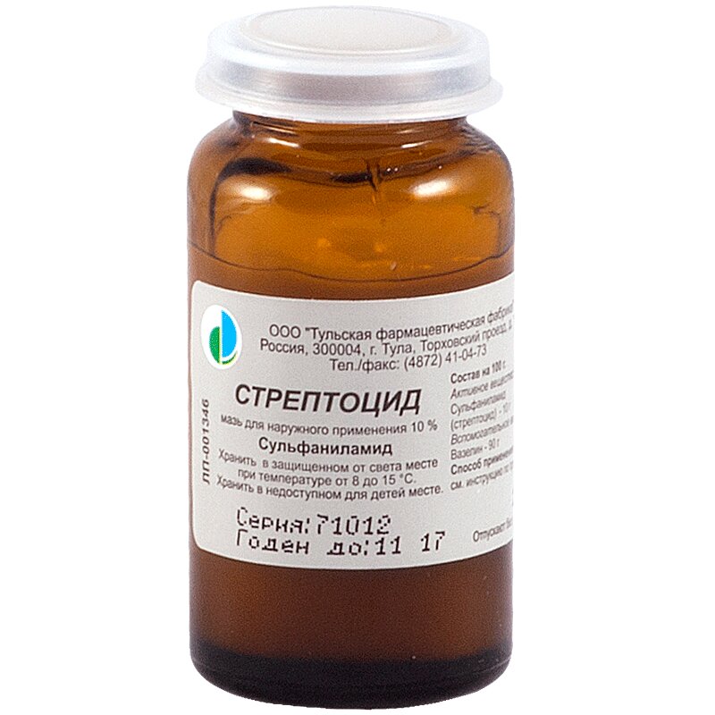 Стрептоцид 10% мазь для наружного применения 25 г 1 шт Тульская фармафабрика