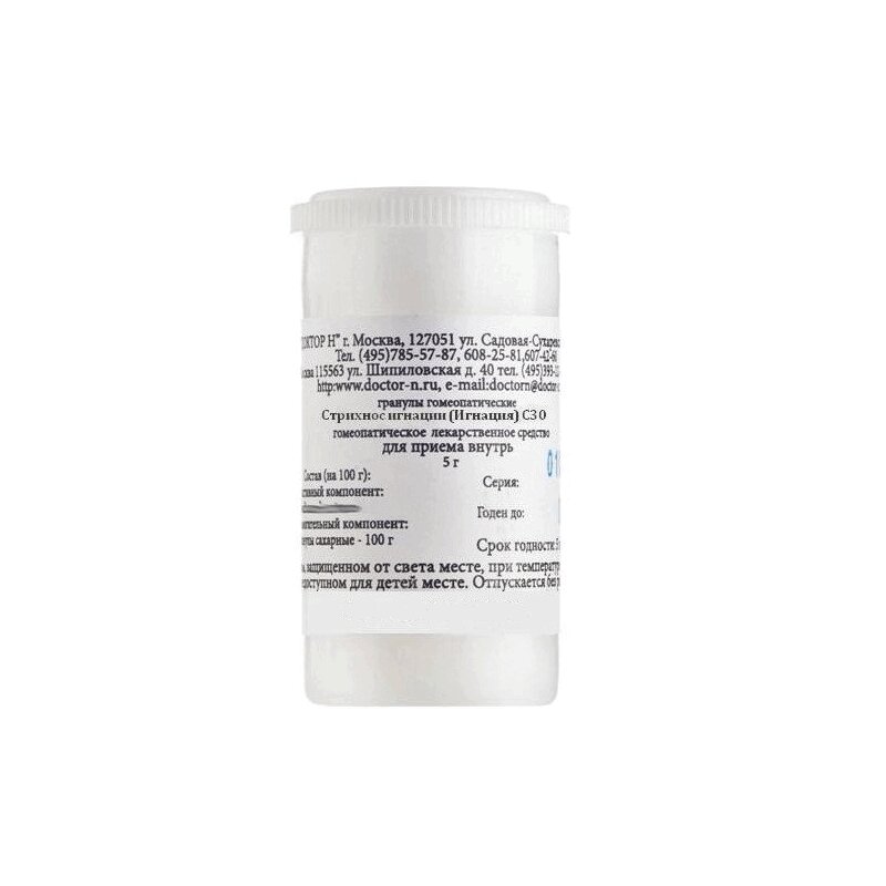 Инструкция по применению Стрихнос игнации Игнация C30 гранулы гомеопатические 5 г