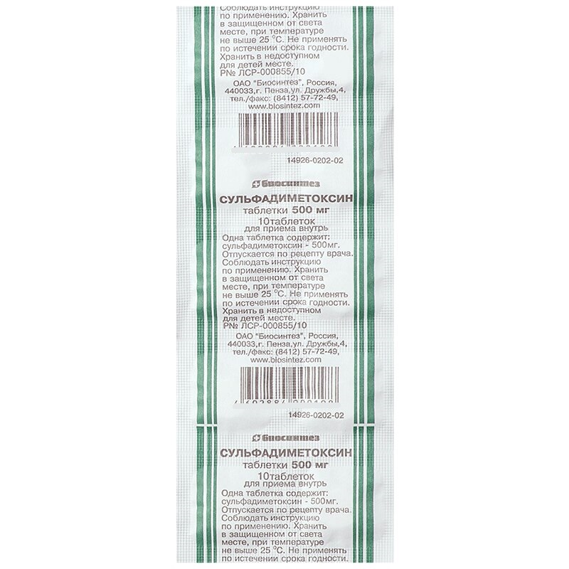 Сульфадиметоксин 500 мг таблетки 10 шт Биосинтез