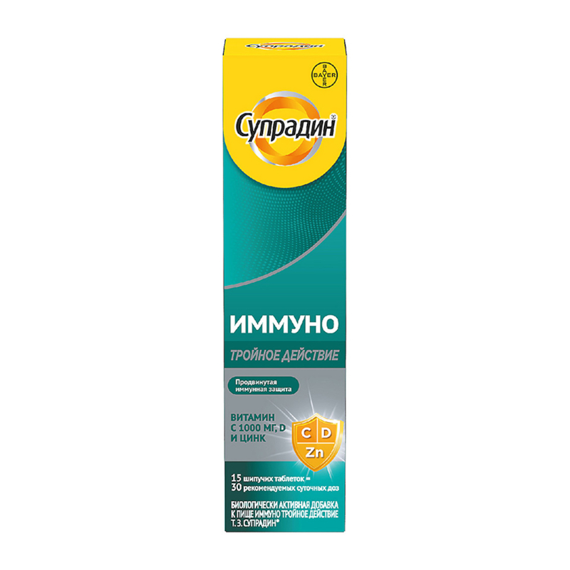 Цены на Супрадин Иммуно Витамин С 1000 мг таблетки шипучие 15 шт в аптеках Москвы
