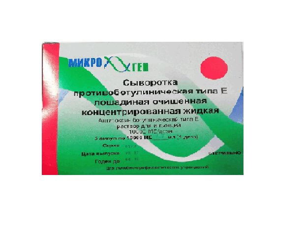 Сыворотка противоботулиническая типа Е представляет собой белковую фракцию сыворотки крови лошадей, иммунизированных ботулиническим анатоксином или токсином типа Е, содержащую специфические иммуноглобулины.