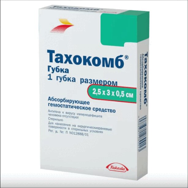 Инструкция по применению Тахокомб губка 2,5х3,0х0,5 см 1 шт