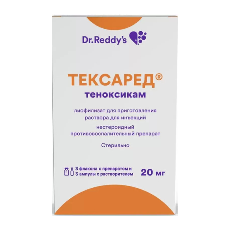 Тексаред 20 мг лиофилизат для приготовления раствора для инъекций 3 шт + растворитель 3 шт