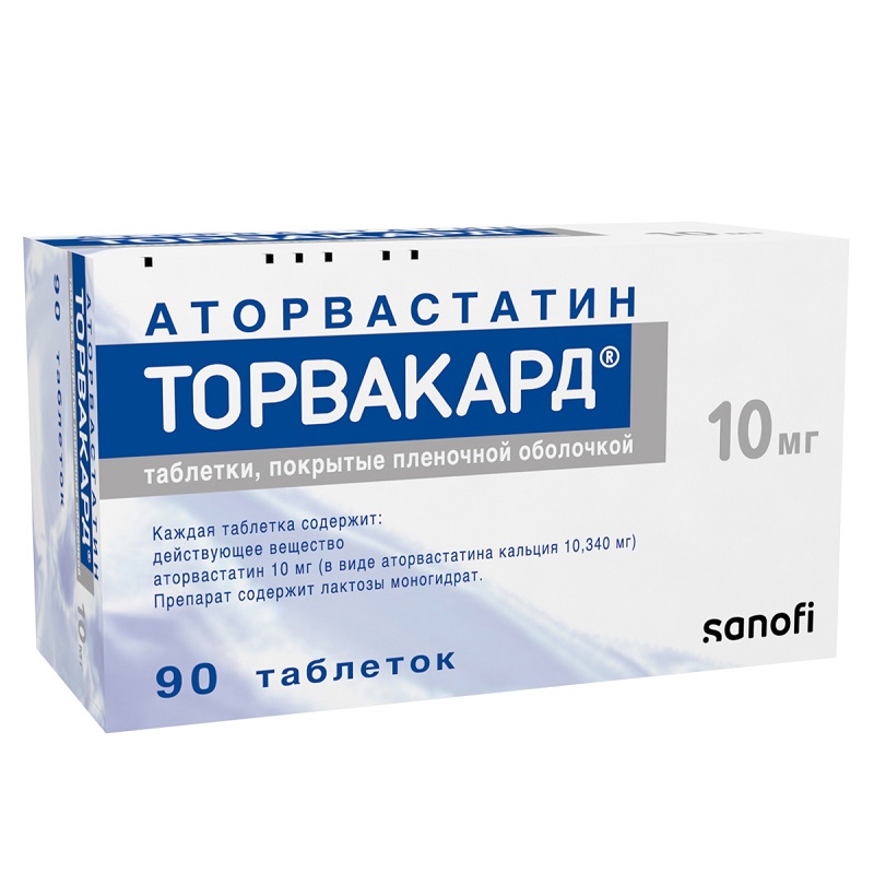 Торвакард таблетки покрытые пленочной оболочкой блистер 10 мг 90 шт