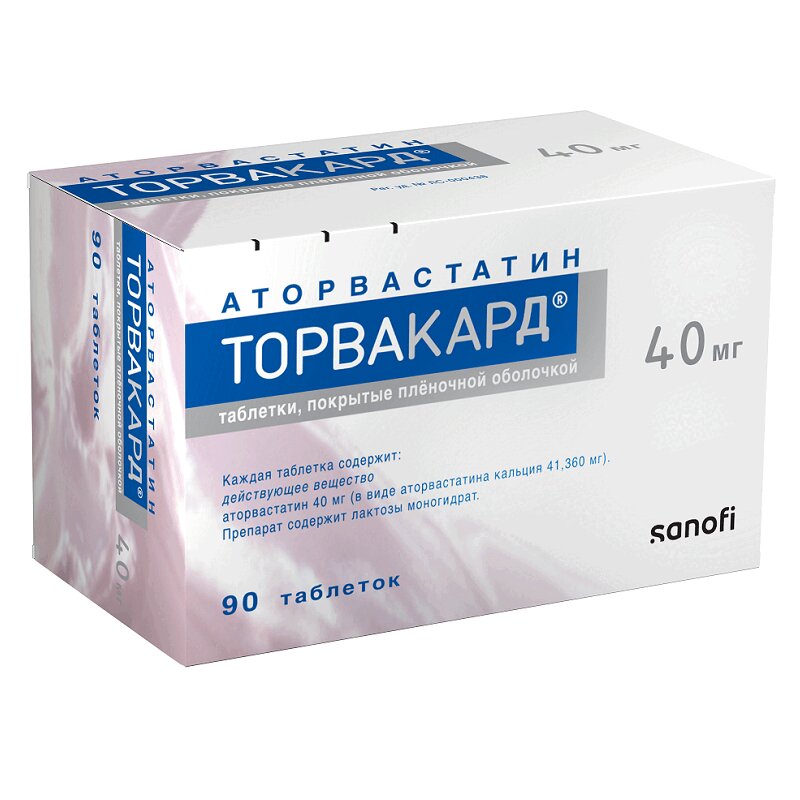 Торвакард 40 мг таблетки покрытые пленочной оболочкой 90 шт