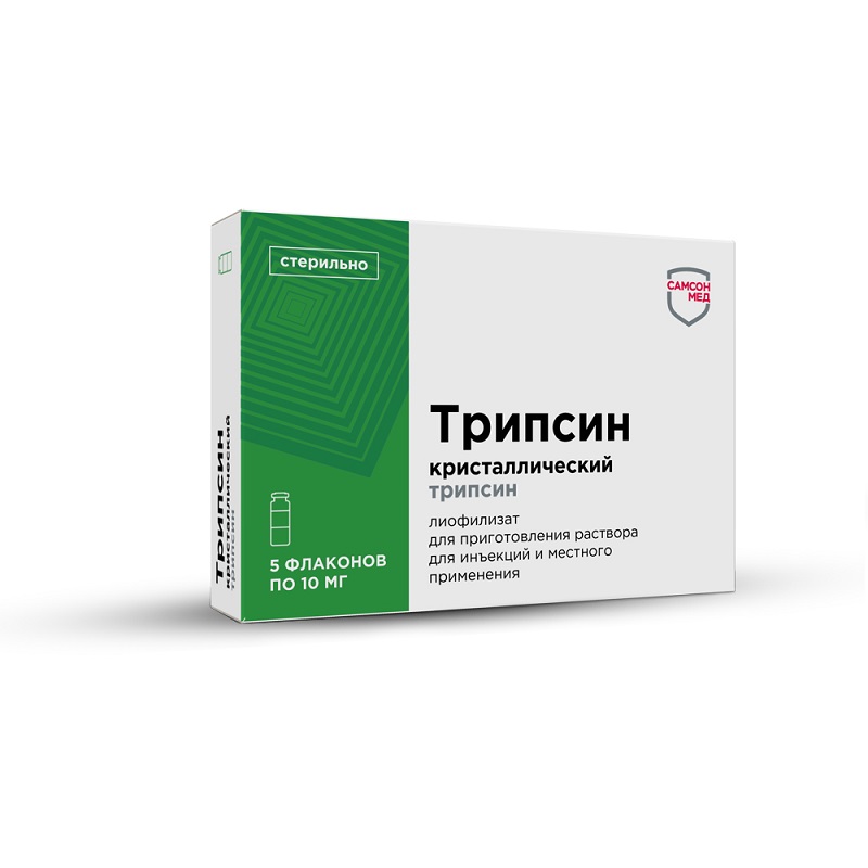 Инструкция по применению Трипсин кристаллический 10 мг лиофилизат для приготовления раствора для инъекций и местно 5 шт