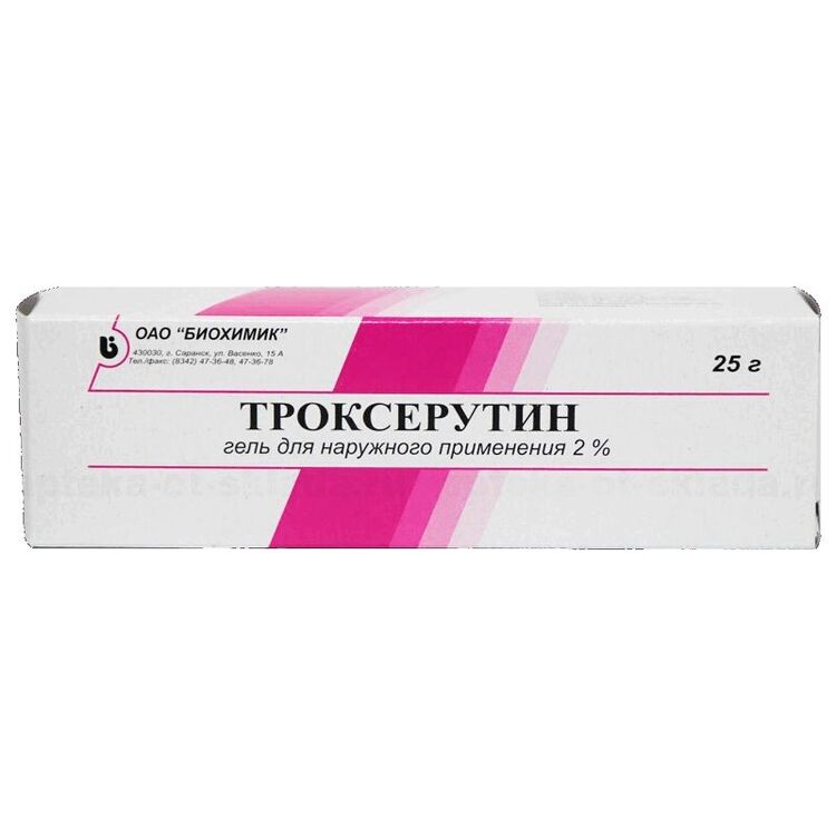 Инструкция по применению Троксерутин 2% гель для наружного применения 25 г
