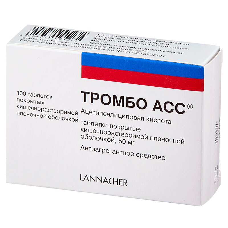 Тромбо АСС таблетки кишечнорастворимые, покрытые пленочной оболочкой блистер 50 мг 100 шт