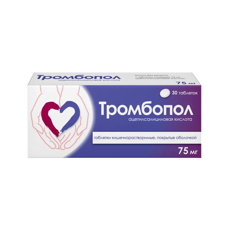 Тромбопол 75 мг таблетки кишечнорастворимые покрытые оболочкой 30 шт