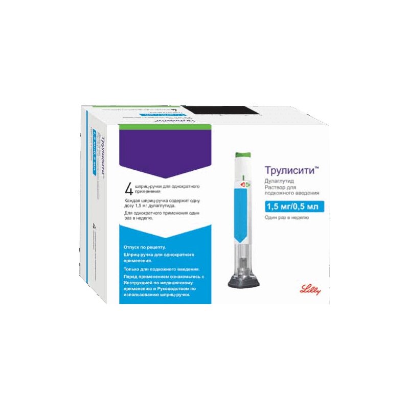 Трулисити 1,5 мг/0,5 мл раствор для подкожного введения шприц-ручка 0,5 мл 4 шт