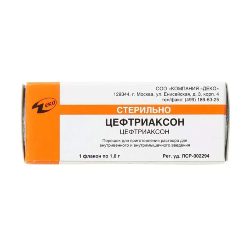 Цефтриаксон 1 г порошок для приготовления раствора для внутривенного и внутримышечного введения 1 шт Деко
