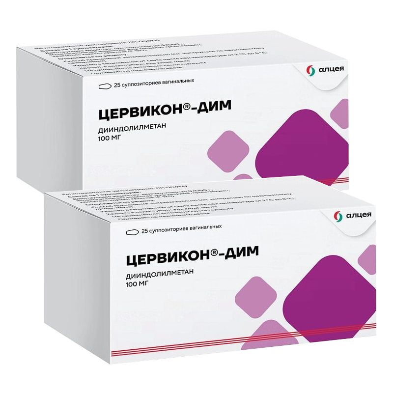 Цены на Набор 2Х Цервикон-Дим 100 мг суппозитории вагинальные 25 шт в аптеках Москвы