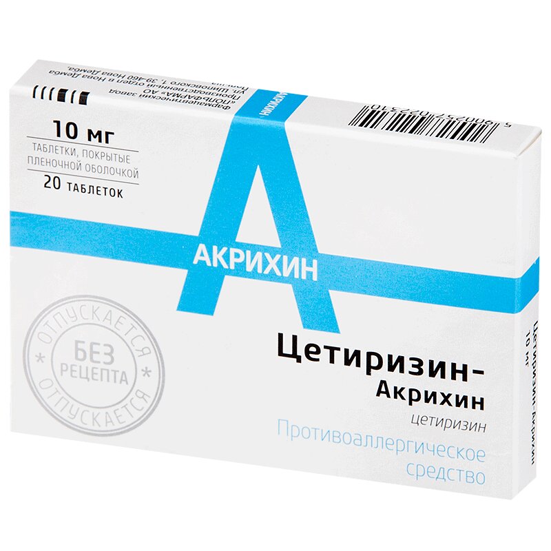 Цетиризин-Акрихин 10 мг таблетки покрытые пленочной оболочкой 20 шт