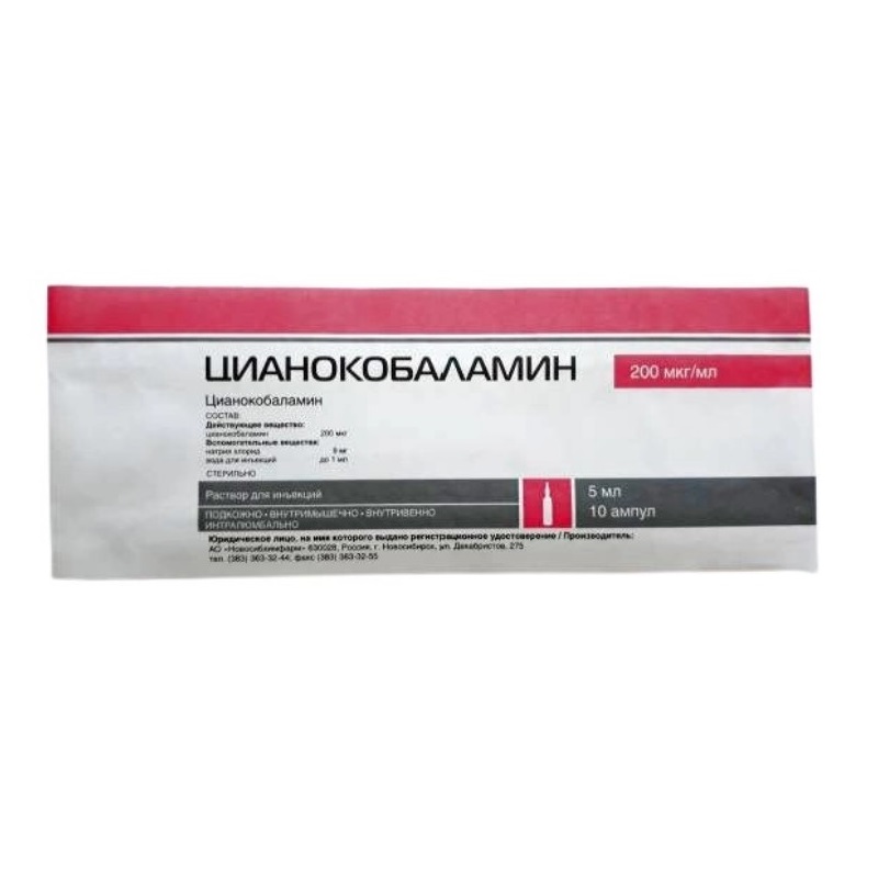 Цианокобаламин 200 мкг/мл раствор для инъекций 5 мл 10 шт