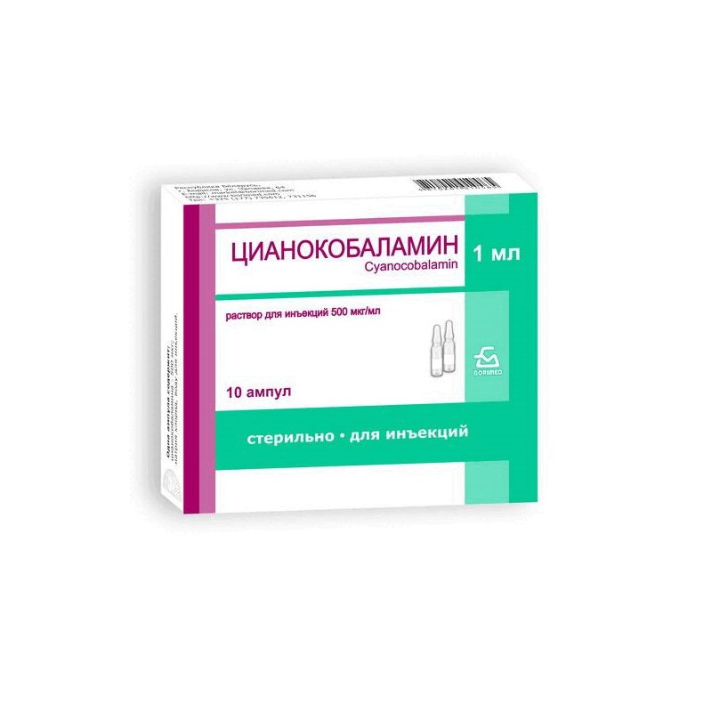 Инструкция по применению Цианокобаламин 500 мкгг/мл раствор для инъекций 1 мл 10 шт
