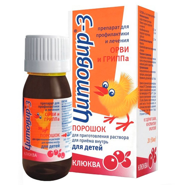 Инструкция по применению Цитовир-3 порошок для приема внутрь для детей 20 г Клюква