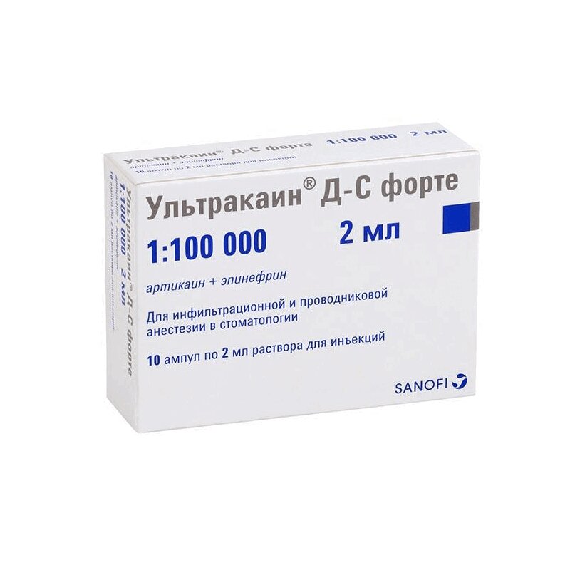 Ультракаин Д-С форте раствор для инъекций ампула 40 мг+0,01 мг/ мл амп.2 мл 10 шт