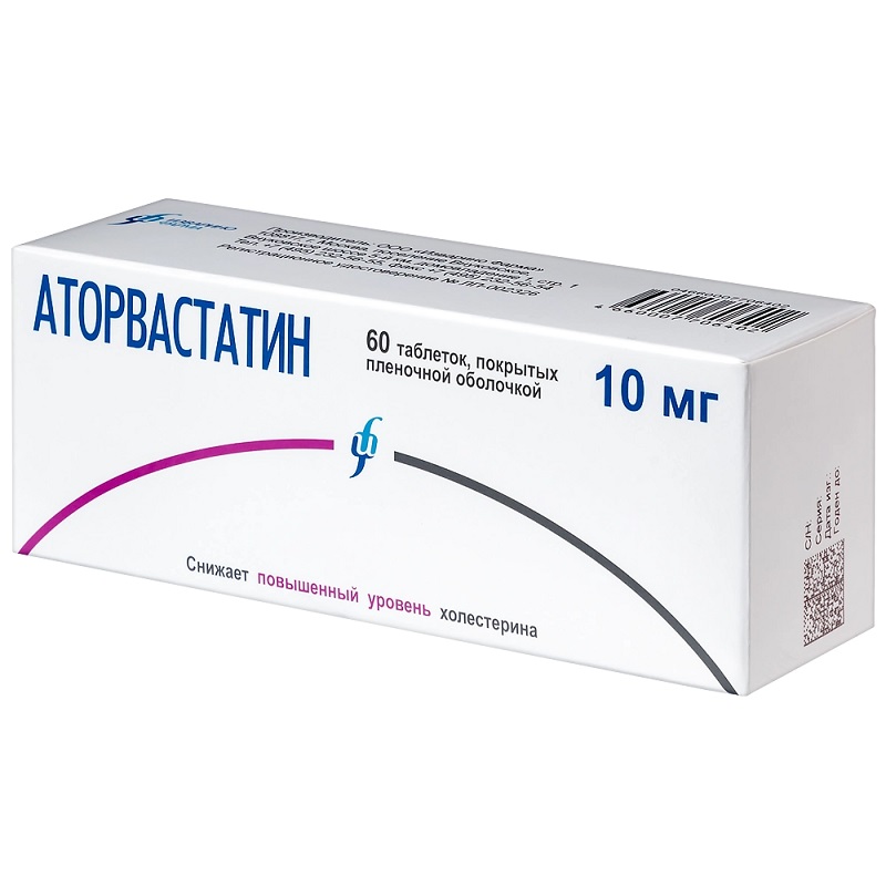 Инструкция по применению Аторвастатин 10 мг таблетки 60 шт