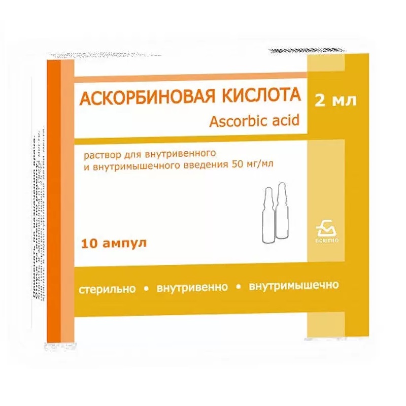 Аскорбиновая кислота 50 мг/мл раствор для внутривенного и внутримышечного введения 2 мл 10 шт