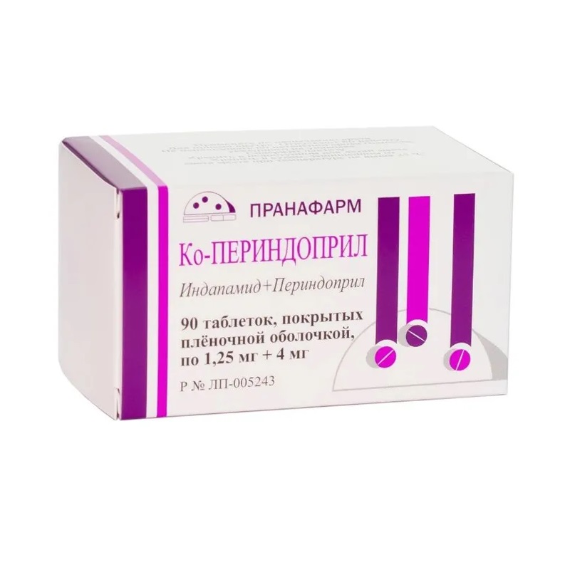 Инструкция по применению Ко-Периндоприл 1,25 мг+4 мг таблетки 90 шт