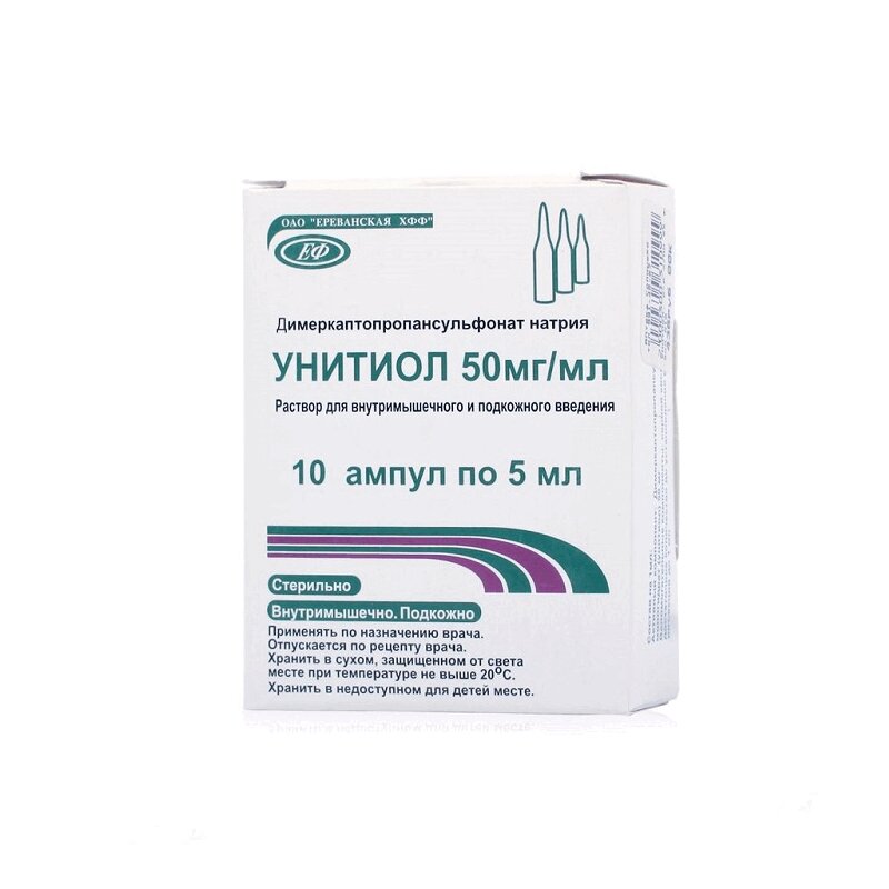 Инструкция по применению Унитиол 50 мг/мл раствор для инъекций 5 мл 10 шт