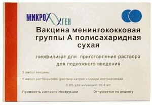 Вакцина менингококковая группы А полисахар.лиофилизат для приготовления раствора для подкожного введения ампула 250 мкг 5 шт