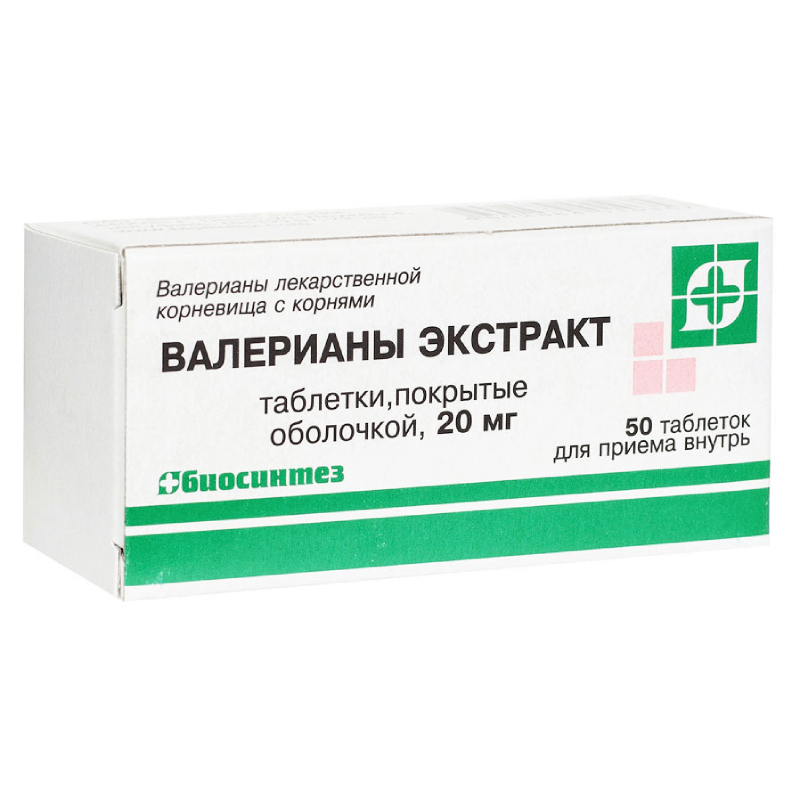 Валерианы экстракт 20 мг таблетки покрытые оболочкой 50 шт Биосинтез