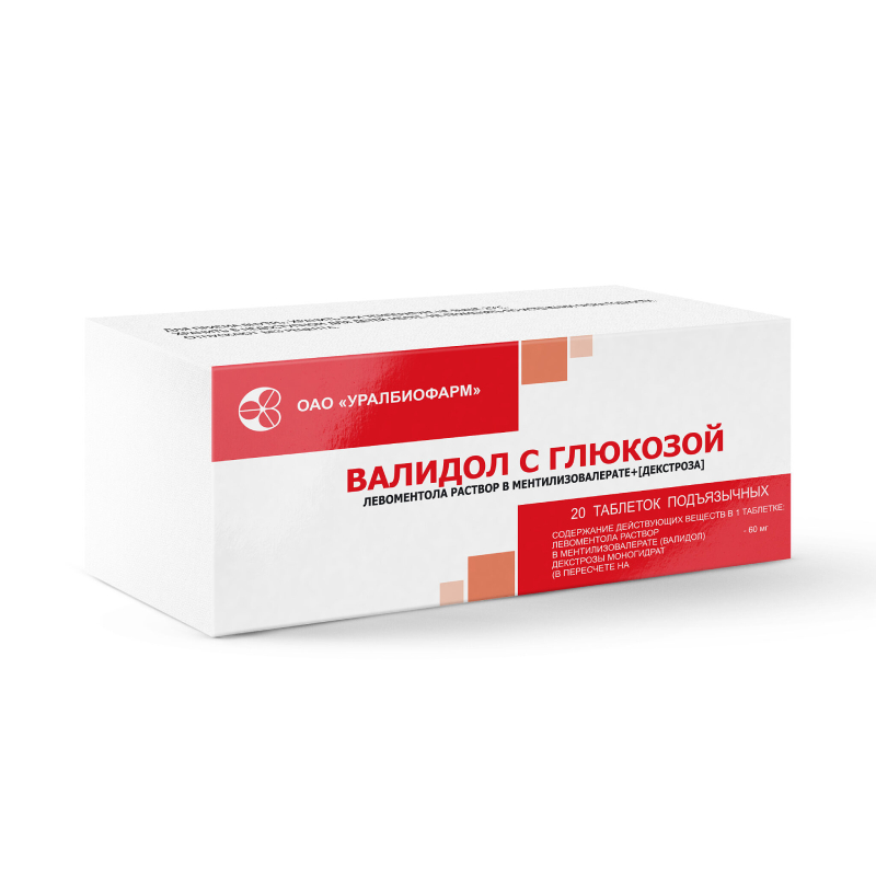 Валидол с глюкозой 60 мг+171 мг таблетки подъязычные 20 шт Уралбиофарм