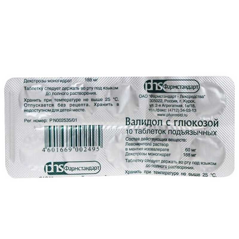 Режим дозирования препарата Валидол с глюкозой