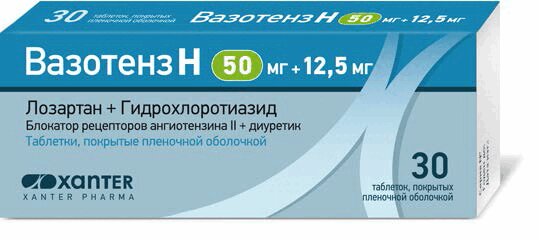 Вазотенз Н таблетки, покрытые оболочкой 50 мг+12,5 мг 28 шт