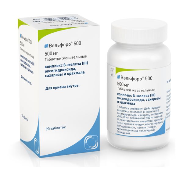 Инструкция по применению Вельфоро 500 таблетки жевательные 500 мг 90 шт
