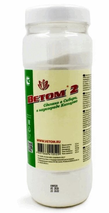 Оздоровительный эффект обеспечивается свойствами бактерий Bacillus amyloliquefaciens, которые, размножаясь в кишечнике, выделяют биологически активные вещества, подавляющие рост и развитие патогенной и условно-патогенной микрофлоры. Вследствие этого процесса в кишечнике нормализуется микробный состав до соответствующего эволюционно сложившейся нормы, очищаются его стенки от неперевариваемых остатков пищи, что способствует активному выводу токсинов из организма, беспрепятственной доставке биологически активных и питательных веществ. Под воздействием Ветома 2 нормализуются: метаболизм, пищеварение и всасывание биологически активных компонентов пищи в желудочно-кишечном тракте.
