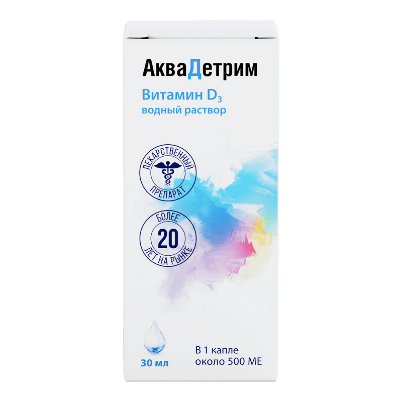 У здоровых лиц без нарушений всасывания: 1 капля (соответствует 500 МЕ витамина D3) в сут.