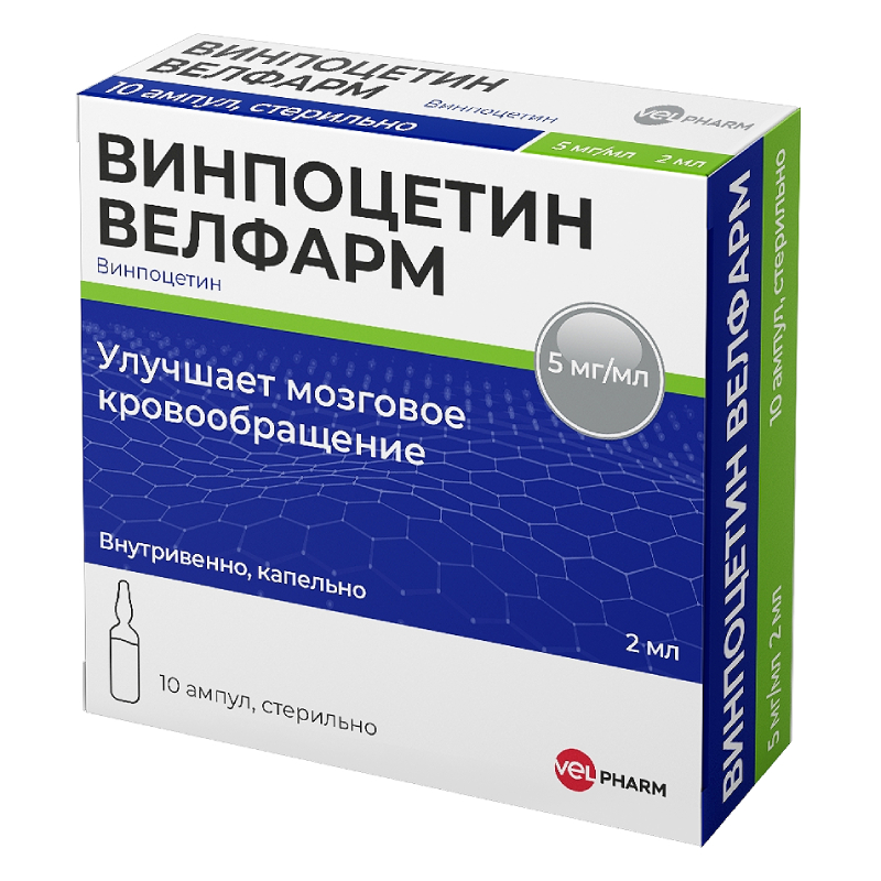 Винпоцетин Велфарм 5 мг/мл концентрат для приготовления раствора для инфузий ампула 2 мл 10 шт
