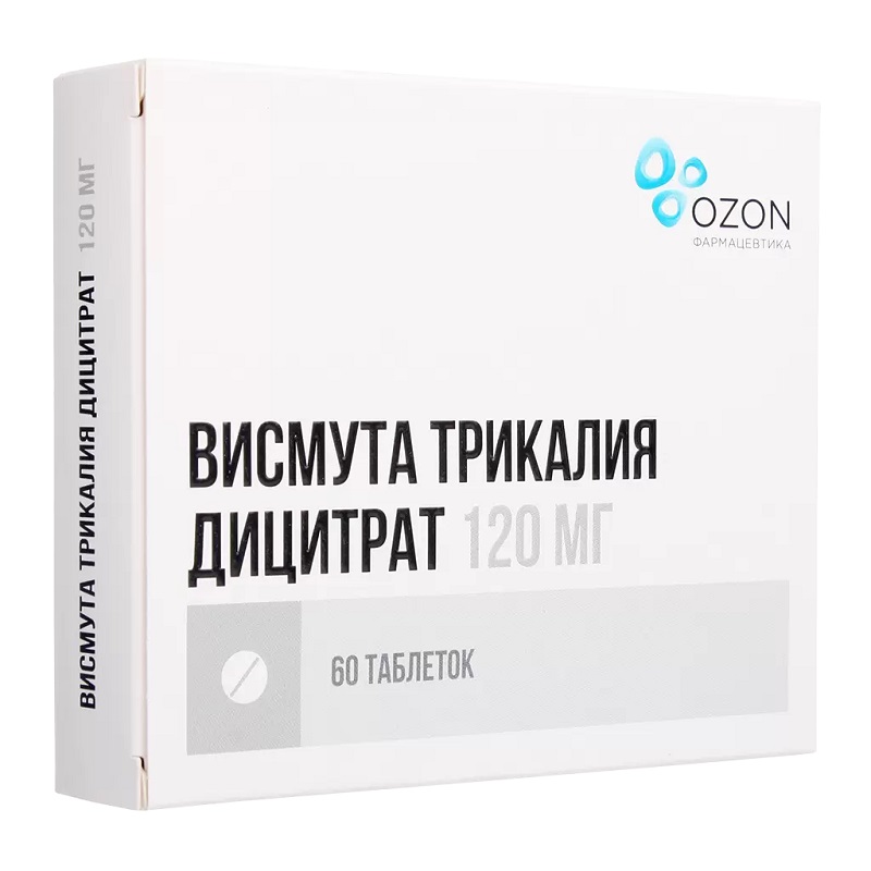 Висмута трикалия дицитрат таблетки покрытые пленочной оболочкой упаковка контурная 120 мг 60 шт