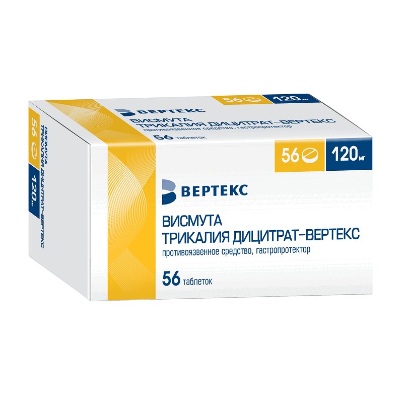Висмута трикалия дицитрат-ВЕРТЕКС 120 мг таблетки покрытые пленочной оболочкой 56 шт