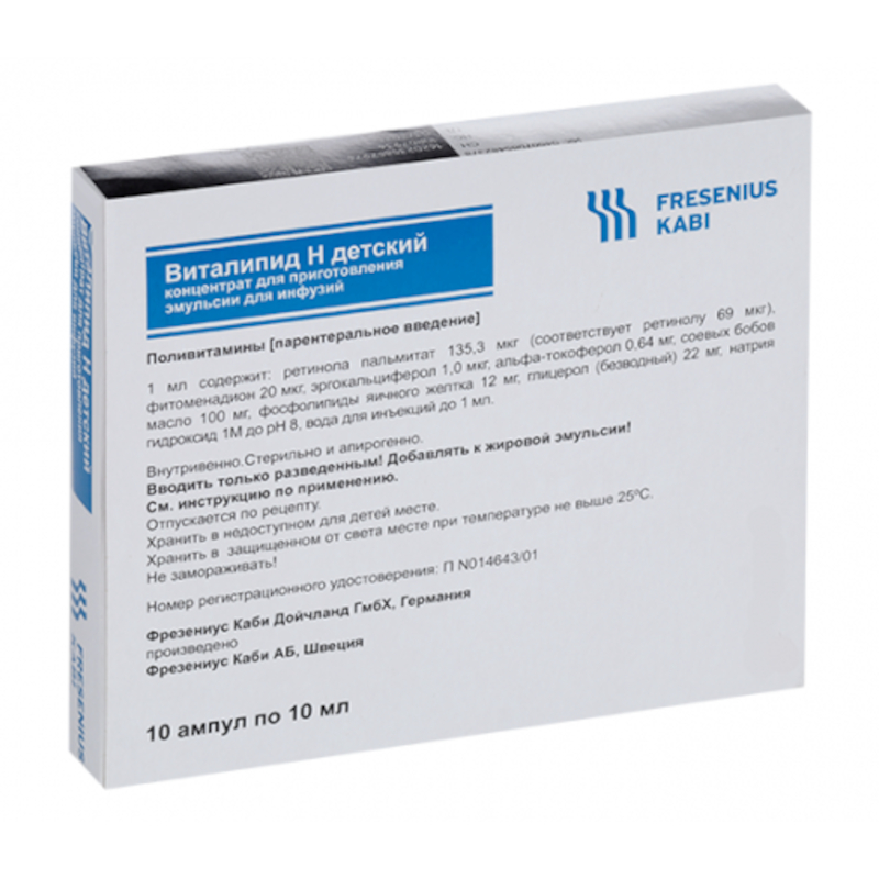 Инструкция по применению Виталипид Н детский концентрат для приготовления эмульсии для инфузий 10 мл 10 шт