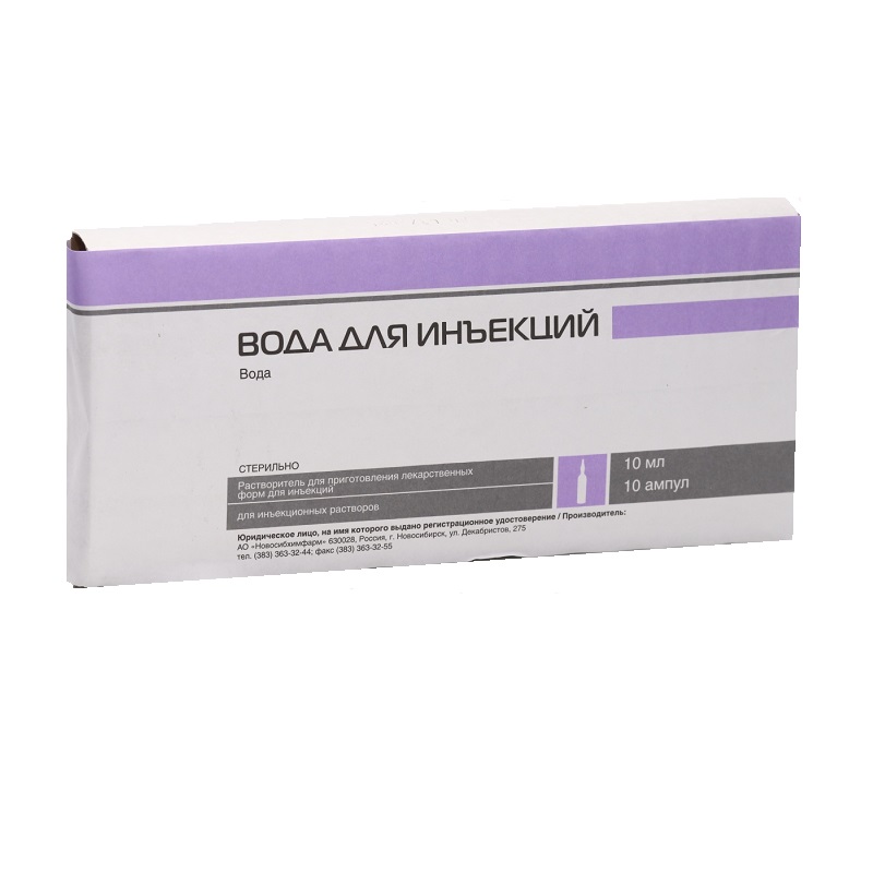 Вода для инъекций растворитель для приготовления лекарственных форм ампула 10 мл 10 шт Новосибхимфарм