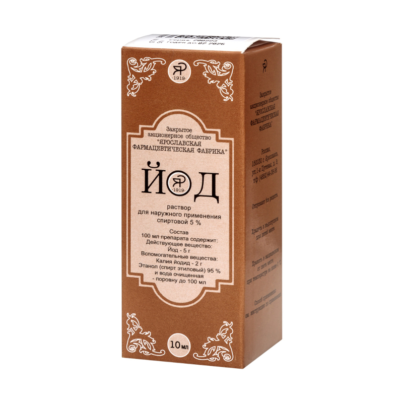 Йод 5% раствор спиртовой для наружного применения 10 мл 1 шт Ярославская фармфабрика