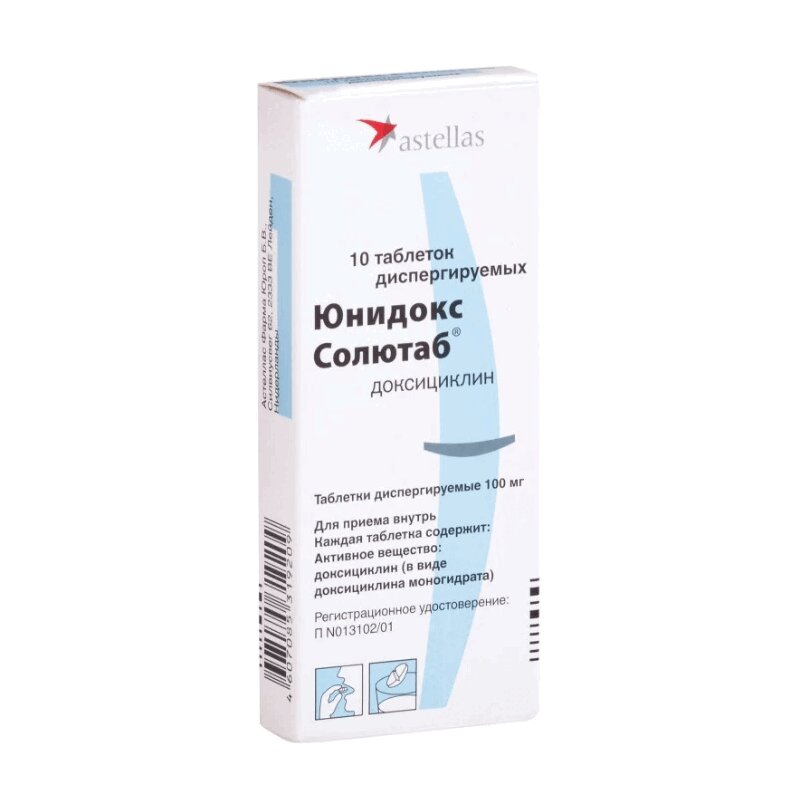 Инструкция по применению Юнидокс Солютаб 100 мг таблетки диспергируемые 10 шт