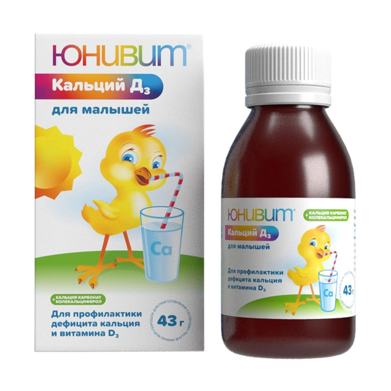 Цены на Юнивит Кальций Д3 для малышей 40 мг/мл+10 МЕ/мл порошок для приготовления суспензии 43 г в аптеках Москвы