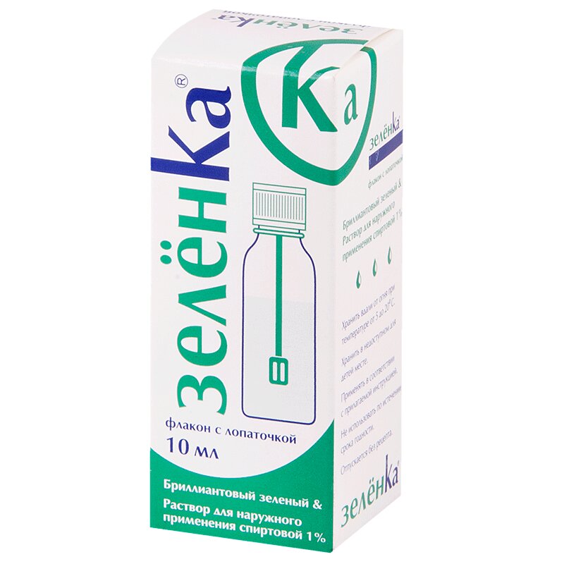 Инструкция по применению ЗеленКа 1% раствор для наружного применения спиртовой с крышкой-помазком 10 мл