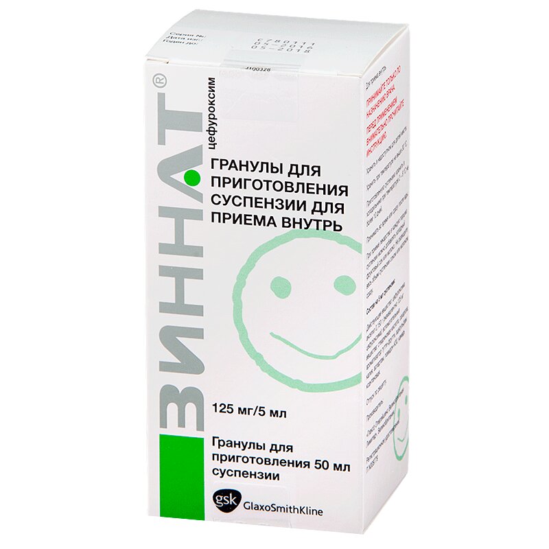 Зиннат 125 мг/5 мл гранулы для приготовления суспензии для приема внутрь 50 мл 1 шт