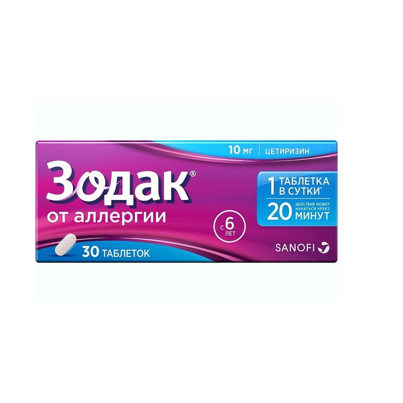 Зодак 10 мг таблетки покрытые пленочной оболочкой 30 шт
